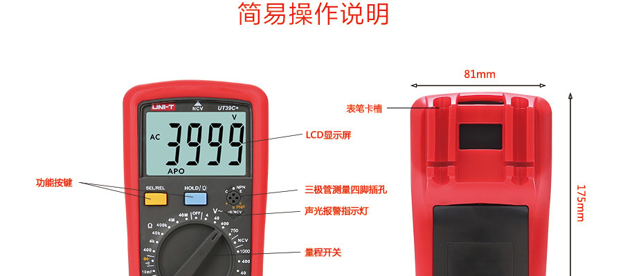 已选 优利德 经济型数字万用表 UT39A+,1个